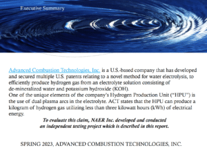 n 2022, NAER conducted their own independent testing of our technology and were amazed by the potential efficiencies and hydrogen production they observed.