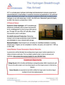 ACT is a private green hydrogen technology & development company preparing for commercialization of technology in numerous industries and applications.